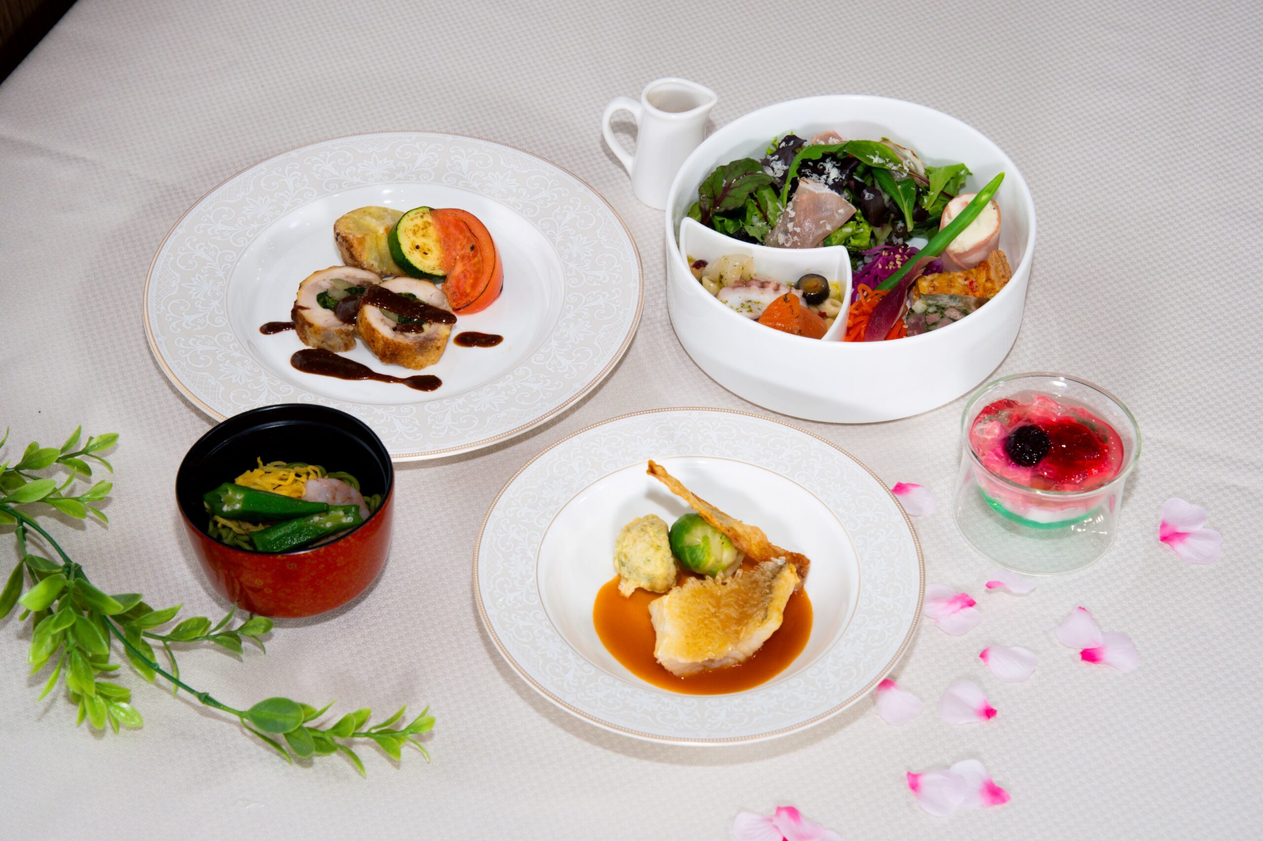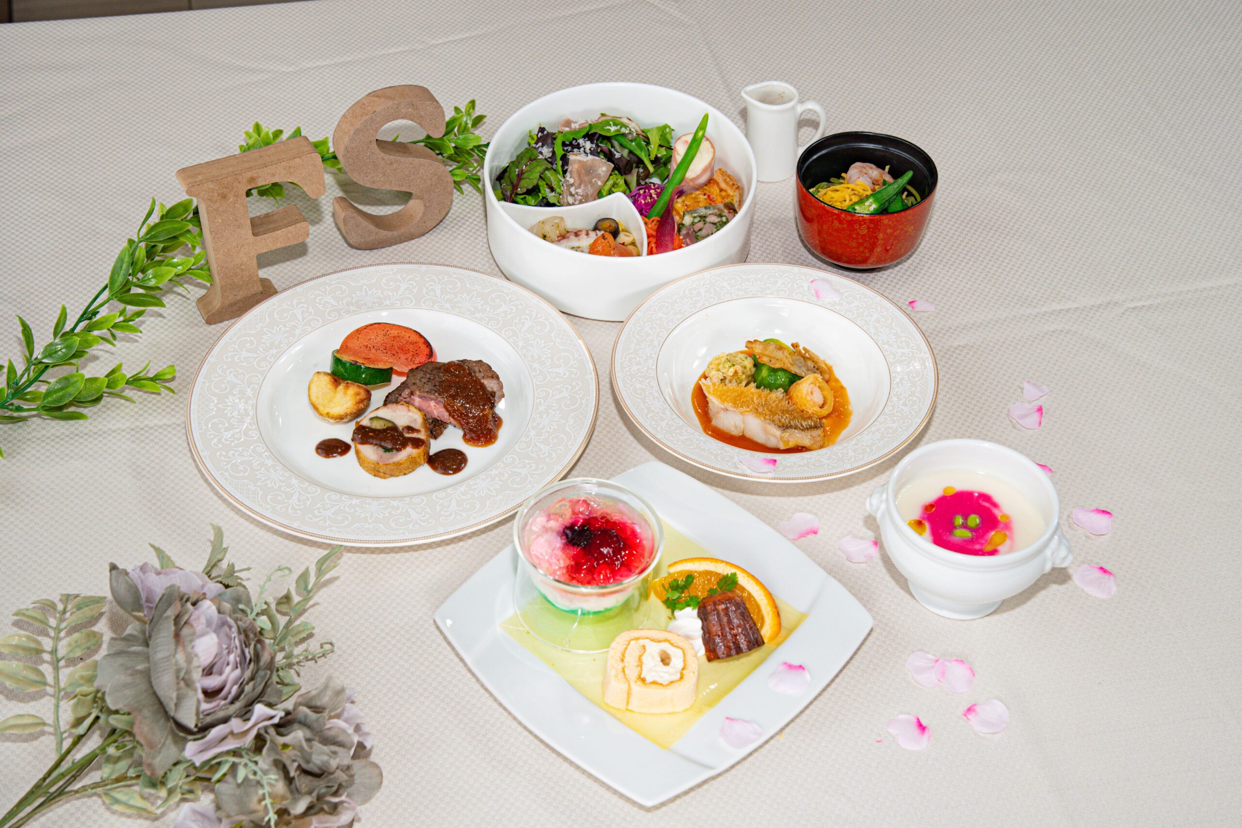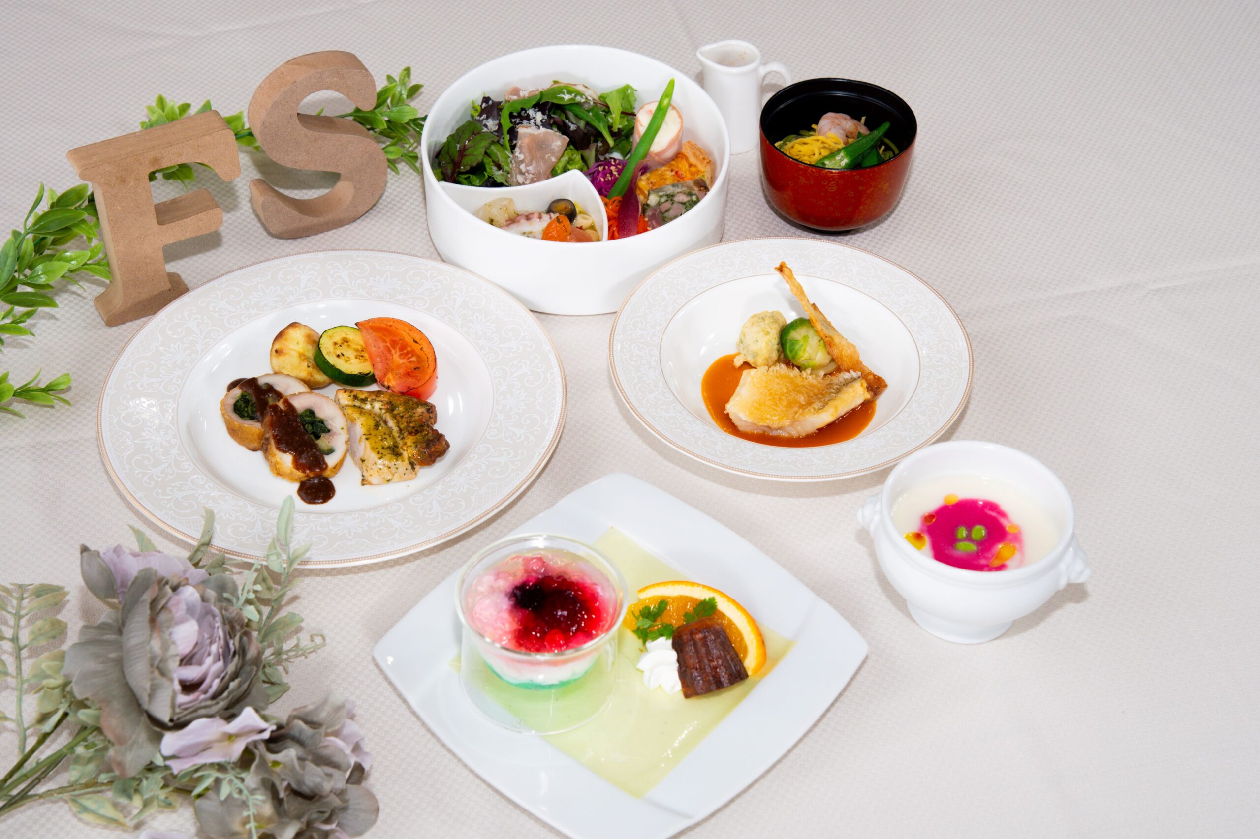 前菜盛り合わせ スープ 魚料理 肉料理 お食事 デザート
