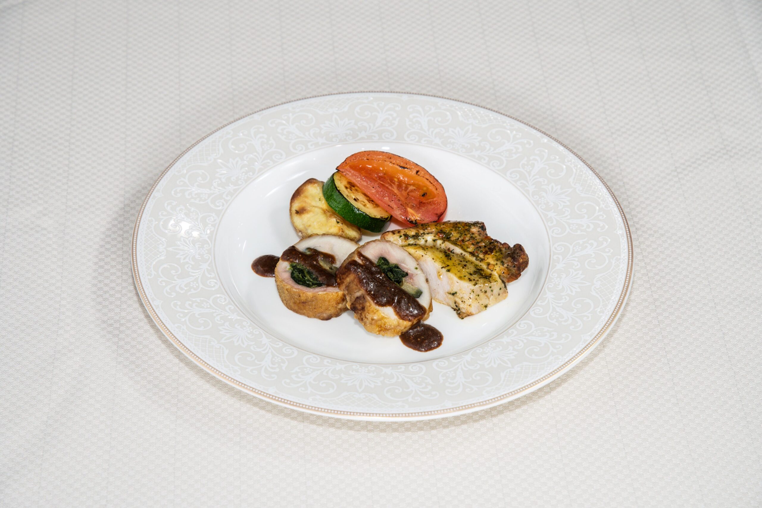 鶏肉のバロティーヌと三元豚のグリル