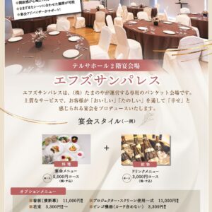 ここでしか体験できない特別なひとときをお過ごしください。福島市のテルサ宴会ならエフズサンパレスへお任せください。