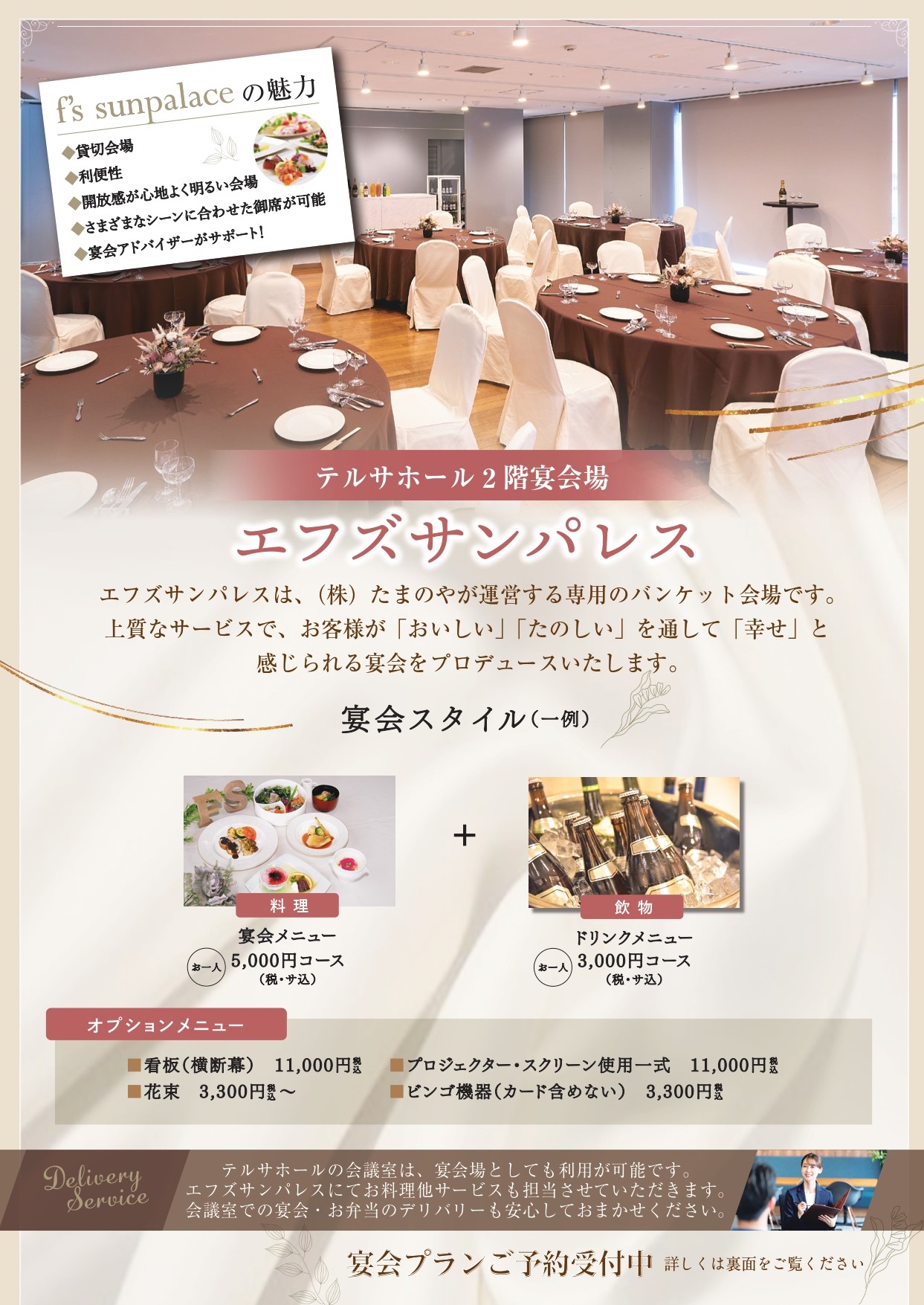 エフズサンパレス会場(テルサ2階宴会会場)設備情報